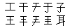 2)第一笔画与其它笔画是相接的关系,如:丁厂工干刀王;